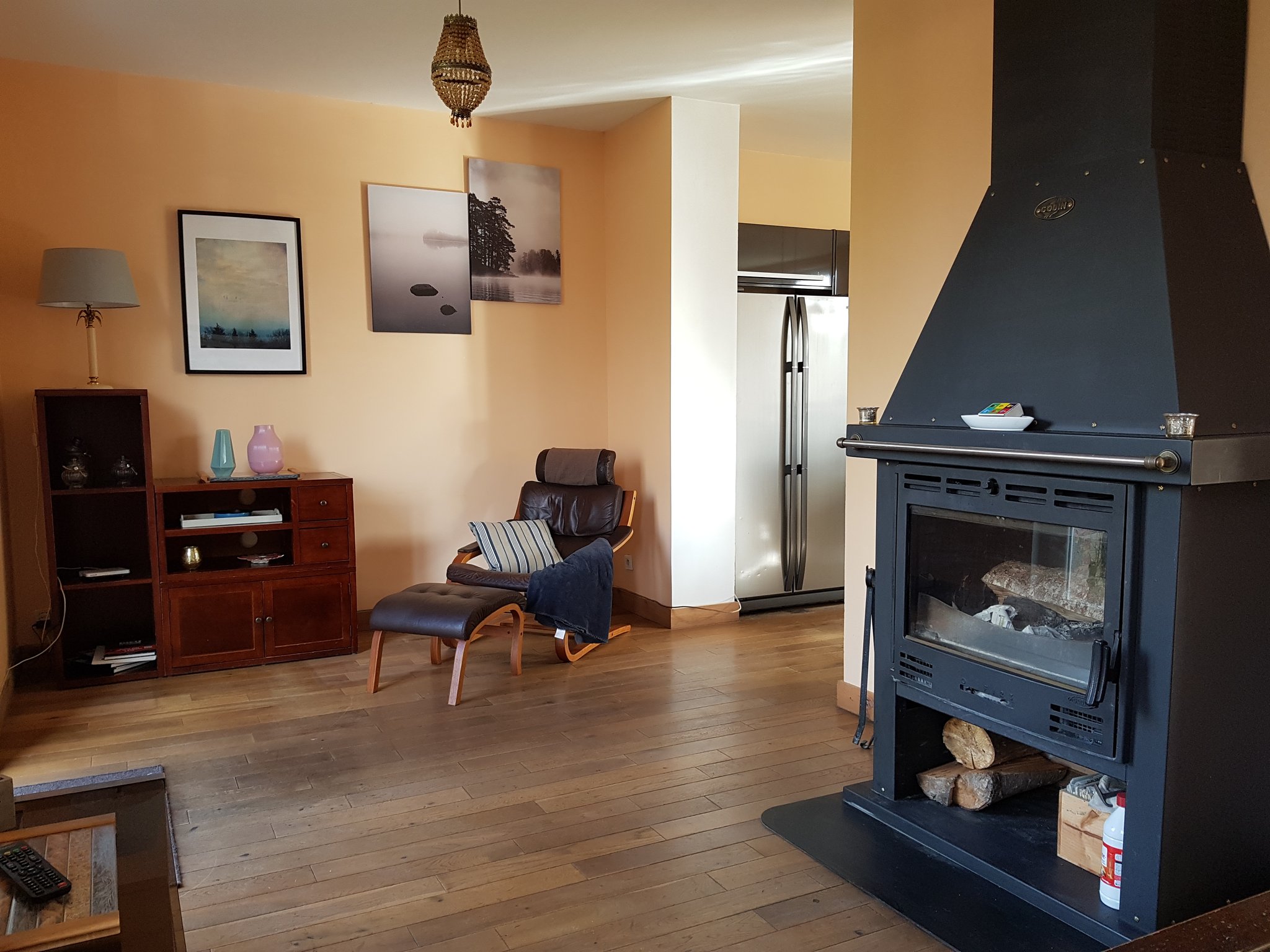 Salon avec télévision satellite, poêle GODIN, coin lecture