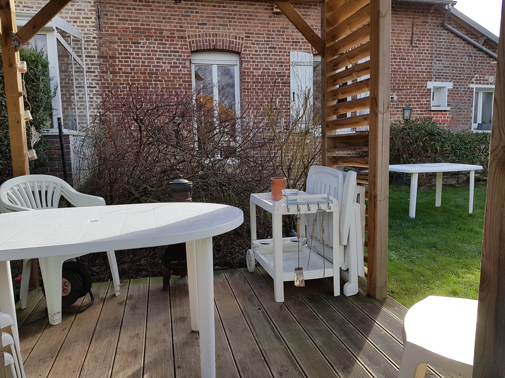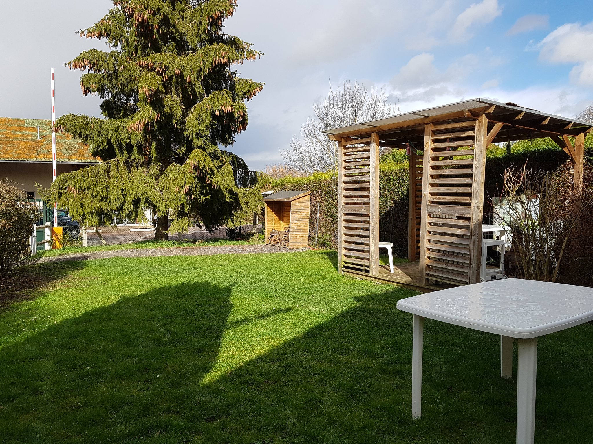 Salon de jardin avec barbecue (charbon non fourni), 1 transat, emplacement pour 1 ou 2 véhicules